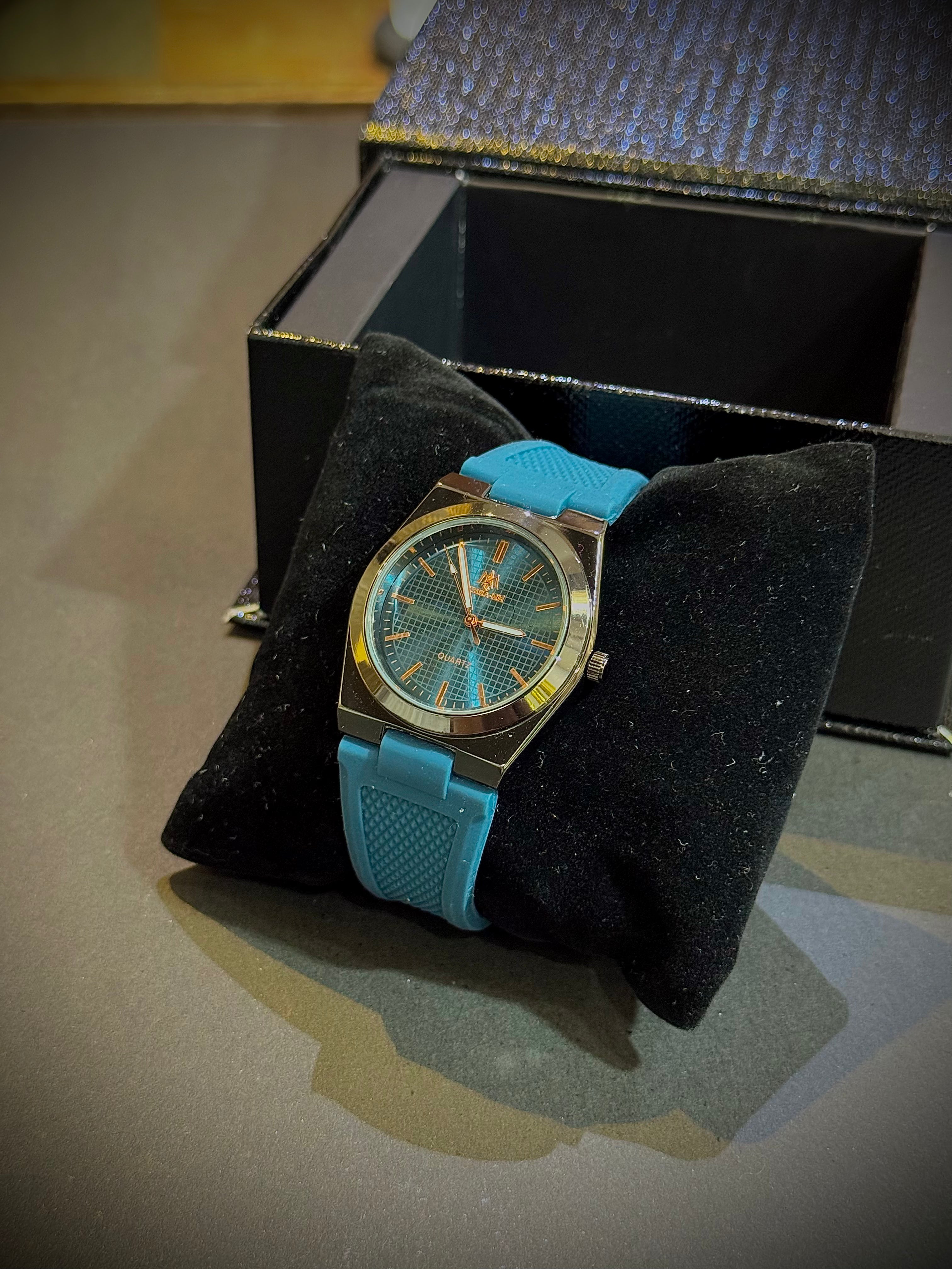 Luxury Blue Strap Watch With Golden Shiny Dial β Elegant & Premium Look
